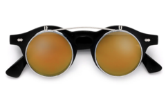 Black Orange Burst Retro Inspired Flip Up Round Sunglasses / Glasses listed in: